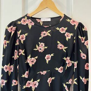 New Flynn Skye Elena Mini Dress Night Heavens Size XS Black Floral Open Back NWT