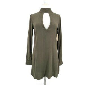 New Flynn Skye Leah Mini Dress Womens S Solid Olive Green Forest Cut Outs