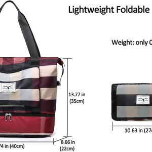 Foldable and Waterproof Travel Bag: The new folding travel bag is made of lightweight waterproof Oxford fabric, wear-resistant and fashionable. It has excellent waterproof effect in rainy and wet conditions. You can fold it up, that just like a handbag. Greatly save space and easy to carry on your flight. Unfolding size: 15.74 inch*8.66 inch*13.77 inch, folding size: 10.63 inch*1.57 inch*7.08 inch