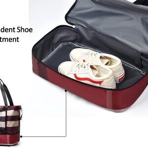 Independent Shoe Compartment: The gym tote bag has a big independent shoe compartment. Put shoes in the shoe compartment to prevent soiling of other items, convenient and practical
