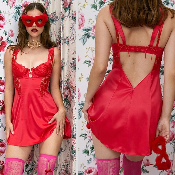 New! For Love & Lemons FLAWED Red Romantic Roses Slip Dress 10972