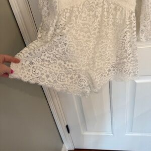 New! For Love & Lemons Santo Eyelash Lace Ruffles Romper White 3396