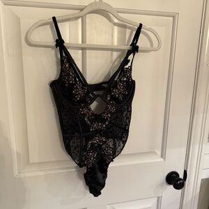 New! For Love and Lemons Caprice Bow Detail Teddy Black 31608