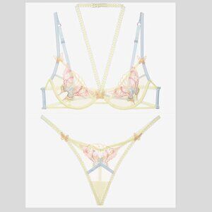 For Love and Lemons Pastel Papillon Underwire Bra & Thong Panty Set