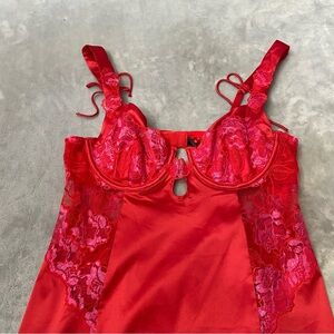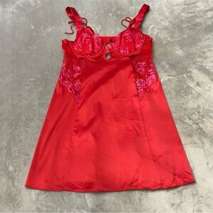 New! For Love and Lemons Red Cordelia Silky Satin Slip Dress 10970