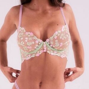 New! For Love and Lemons Tutti Frutti bustier Bra pink green 31313