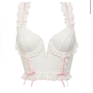 Beautiful white eyelet lace ruffled longline bustier bra top! New without tags!