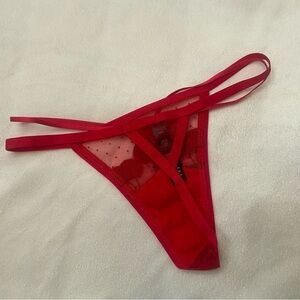 New! For love and lemons Cerise cherry red embroidered mesh thong 3800