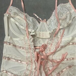 Gorgeous cottagecore eyelet teddy bodysuit with little pink bows. New without tags!