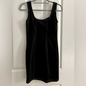 Sleeveless pullover style, with contrast topstitching and scoop neck. Machine wash. 93% polyester/7% spandex.