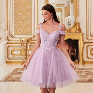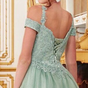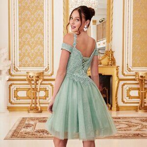 New Formal A-Line Floral Lace Embellished Dress w/ Off Shoulder Straps CD0132