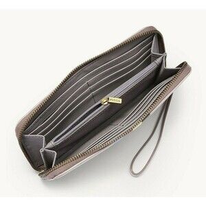 New Fossil Jori Zip Clutch wristlet RFID wallet Grey with Stripes Multi