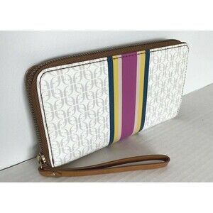New Fossil Jori zip clutch wristlet RFID wallet Pink Stripe