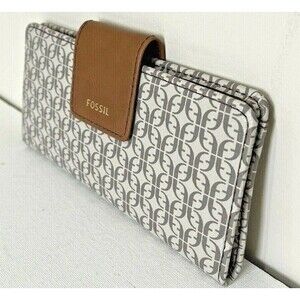 New Fossil Madison Slim Clutch Wallet Taupe / Tan Multi