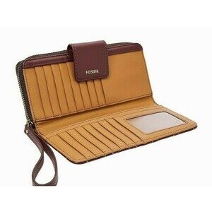 New Fossil Madison zip clutch wristlet Leather wallet Medium Wine Quilted