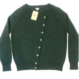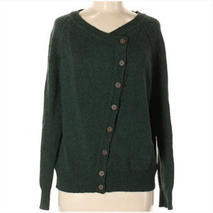 New Fossil Size M Wool Cardigan. Color: dark green. Materials: 55% Merino Wool, 40% Nylon, 5% Cashmere. Very unusual side buttoned top, just beautiful! Chest ~21", Length ~23"