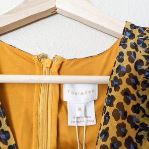 New Foxiedoe Sassa Leopard Printed Cutout Back Fringe Tiered Mini Dress Size Medium