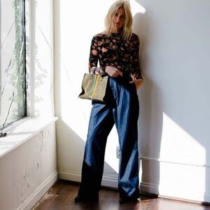 New Frame High Rise Pleated Wide Leg Chino Jeans in Dark Rinse Sz 31