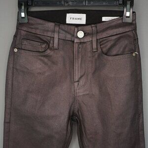 New Frame Le Crop Mini Boot High Rise Coated Jeans in Mahogany size. New! The price tag was removed but the back pocket tag is still attached. Synonymous with the brand's reputation for luxe denim styles, Frame's Le Crop Mini jeans boast a cropped length, flared leg, and a sparkle coated finish.
