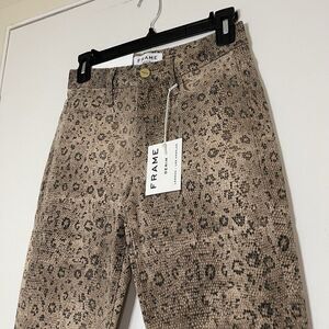 New! Frame Le Crop Mini Boot High Rise Snake Print Jeans Vanilla Multi Size 24