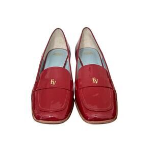 New! Frances Valentine Patent Leather Twiggy Red Block Heel Loafers - Size 11
