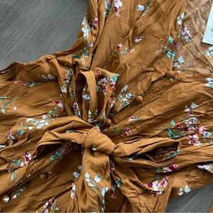 New Francesca's Amber Floral Button Down Wide Leg Tie Waist Jumpsuit