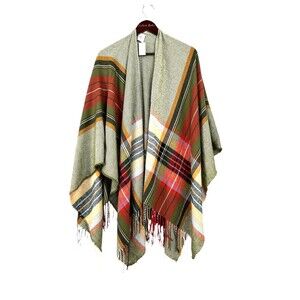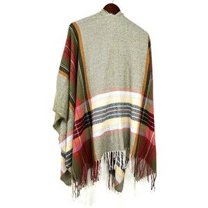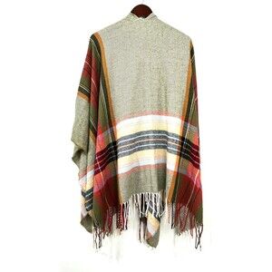 New Francescas Plaid Poncho Fringe Wrap Southwestern Western Women OS Poncho H1