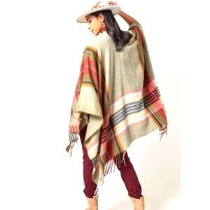 New Francescas Plaid Poncho Fringe Wrap Southwestern Western Women OS Poncho