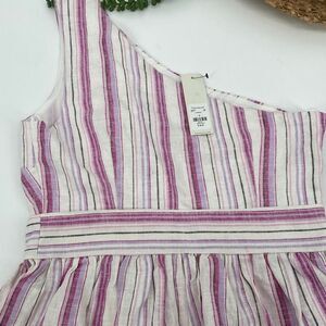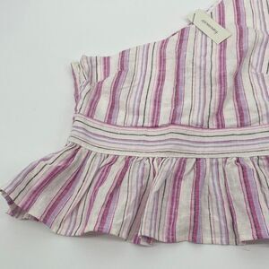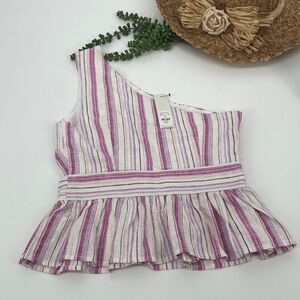 New Francesca's Slone One Shoulder Stripe Peplum Linen Blend Top Small
