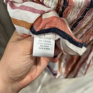 This Francesca's top is super cute and in excellent condition! The halter and backless design is perfect for warm weather. The smocked bodice provides a flattering and comfortable fit, and the striped pattern adds a touch of fun.