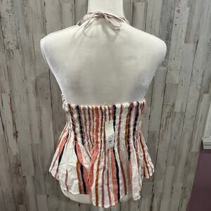 New! Francesca’s Stripe Smocked Peplum Halter Backless Top Womens Size Large