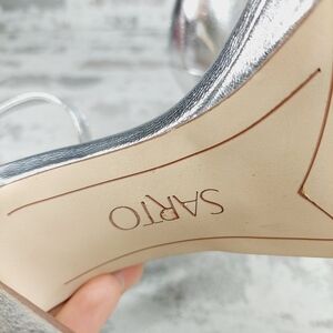 New Franco Sarto Silver Leather Ankle Strap Heeled Sandal B547