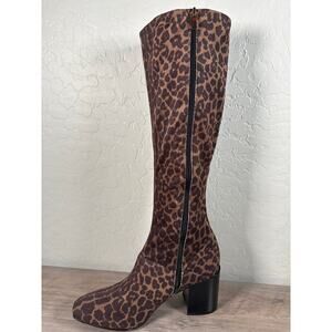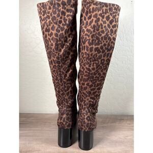 New! Franco Sarto Tribute Knee High Tall Heeled Boot Leopard Print Brown Black 8M