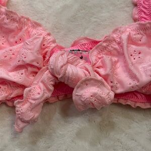 New Frankies Bikinis Colby Eyelet Shine Bikini Top Pink 31044