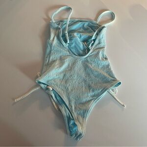 New! Frankie’s Bikinis Kylee lace-up one piece swimsuit blue 22752