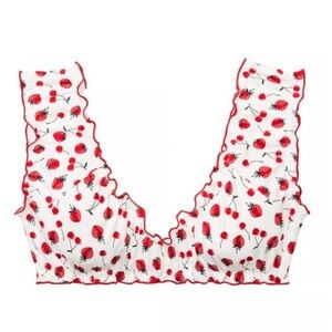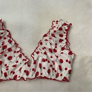 New! Frankie’s Bikinis x Pink Hudson Strawberry Print Ruffled Top 3736