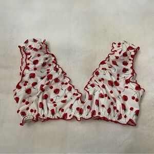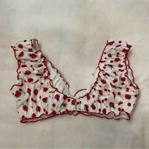 Charming ruffled top with strawberry print. Perfect for a playful look. New with tags!