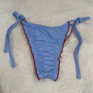 New! Frankies Bikinis xPink Reign Bikini Bottom Marina Gingham Blue 31532