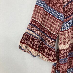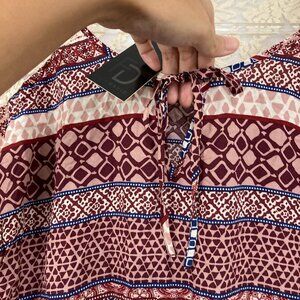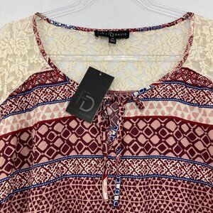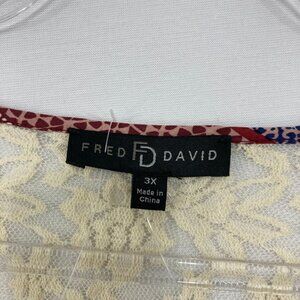 New Fred David size 3X Multi Geometric Artsy Lace Detail Tie Front Boho Blouse