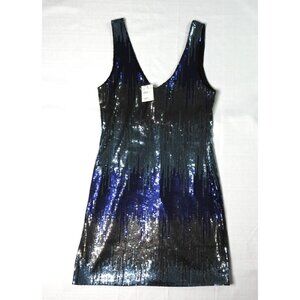 New Frederick’s of Hollywood Sequin Mini Dress Blue Black Silver Sz M NWT Y2K