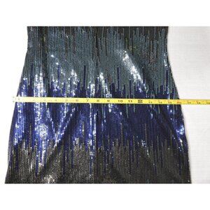 Dazzling Frederick’s of Hollywood bodycon mini dress featuring ombre sequins that shimmer from deep midnight blue to silver. Designed with a flattering V-neckline, sleeveless cut, and curve-hugging stretch fit that makes it perfect for nights out, holiday parties, or special occasions.