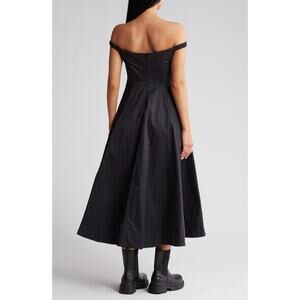 New Free People Alinda Midi Dress $228 SIZE 4 Shiny Black Off-The-Shoulder