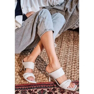 New Free People Alohas Natasha Puffy Mule Heels Sandals White US 6.5 / EUR 37