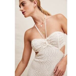 New Free People Anna Sui Crochet Lace Cutout Halter Midi Dress $660 X-SMALL (P)