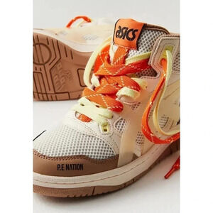 A style unique to itself, taking notes from activities of all kinds, this special collaboration from P.E NATION X ASICS is featured in a mid-top style with textured mesh underlays, double laces, signature P.E color block and clash, and oversized ASICS Stripes in ghost overlay.