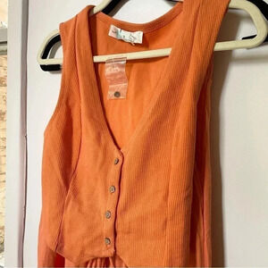 New Free People Beach Roxanne Set Matching Crop Vest Top Wide Leg Pants Orange