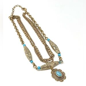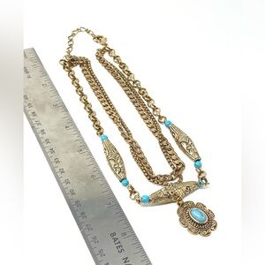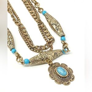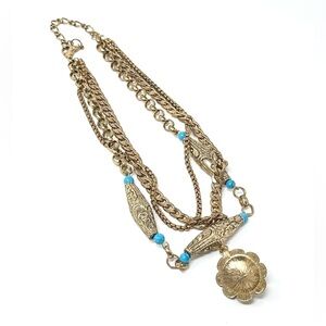 New Free People Bohemian Layered Gold Turquoise Necklace