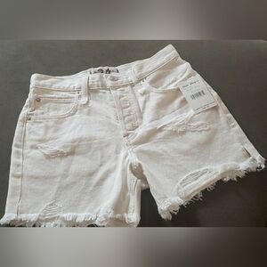 We The Free New With Tags Size 24 Stylish and comfortable, these white distressed denim shorts are perfect for casual outings. Enjoy a trendy look with a touch of edge.
