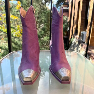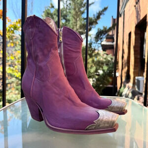 New Free People Brayden Western Boots Leather Ankle Heeled Steel Purple Silver