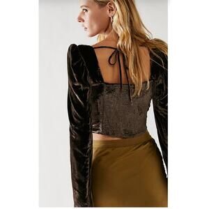 New Free People Bridgette Long Sleeve Velvet Top $128 X-SMALL Brown Corset Insp